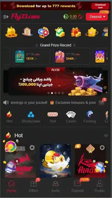 Fly33 Game includes a wide range of games to keep users engaged. Some of the most popular categories include.